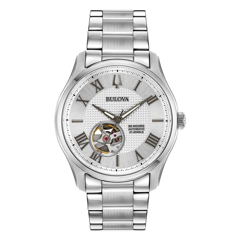 Men S Bulova Wilton Automatic Watch With Silver Tone Skeleton Dial