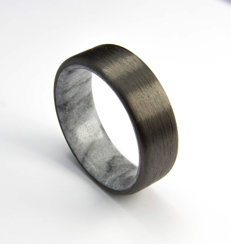 Carbon Fiber Wedding Band With Real Natural Marble Etsy