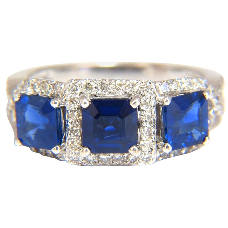 2 40ct Natural Blue Sapphire Diamonds Ring 14kt Classic Three