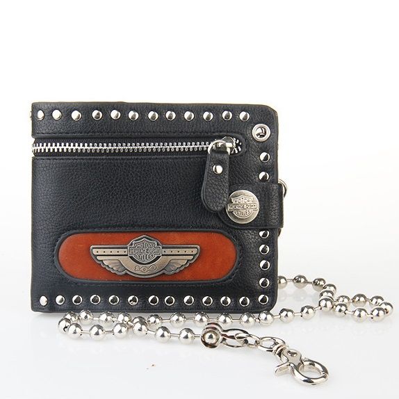 Leather Wallet With Chain And Embossed Logo Black Indian Motorcycle