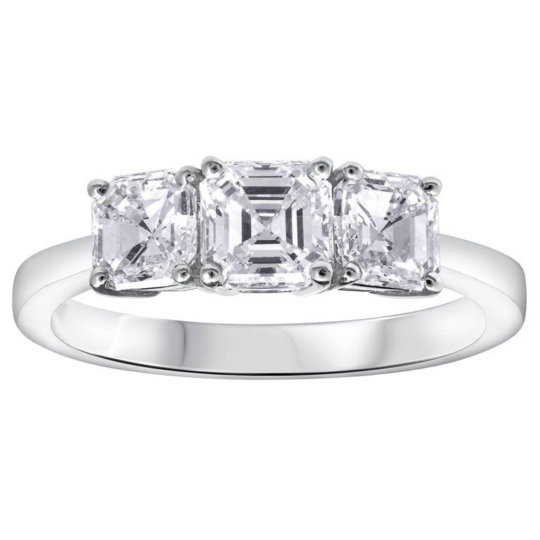 Asscher Cut Diamond Three Stone Engagement Ring For Sale At 1stdibs