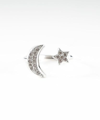 Amazon Com Dainty Crescent Moon Star Ring With Pave Crystals In
