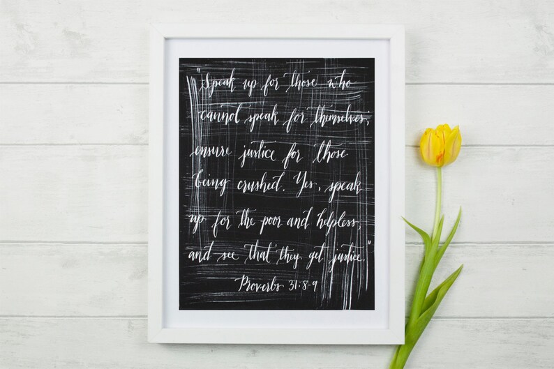 Proverbs 31 8 9 Verse White Calligraphy Ink On 9x12 Black Etsy