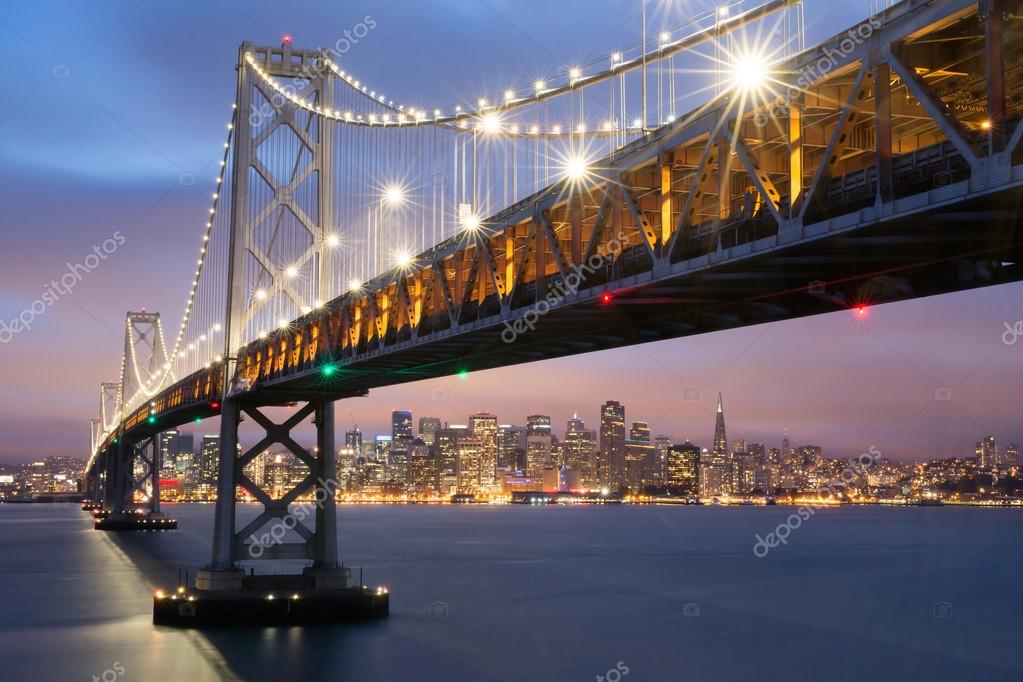 Atardecer Sobre Puente De La Bahia Oakland San Francisco Y El