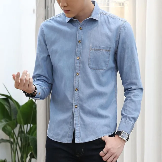 Mens Cowboy Shirts Casual Long Sleeves Male Social Denim Shirt Men S