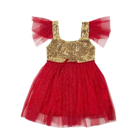 Stylesilove Stylesilove Kids Gold Sequin Tulle Flower Girl Dress