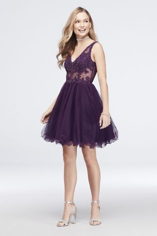 Purple prom dresses and purple party dresses. This array of senior prom dresses and junior prom dresses features a variety of necklines. Find short prom formal homecoming dresses at davids bridal in various short styles colors including black white in the latest 2019 styles.