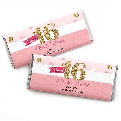 Sweet 16 Party Favor Candy Wrappers 54ct Pink And Gold 16th