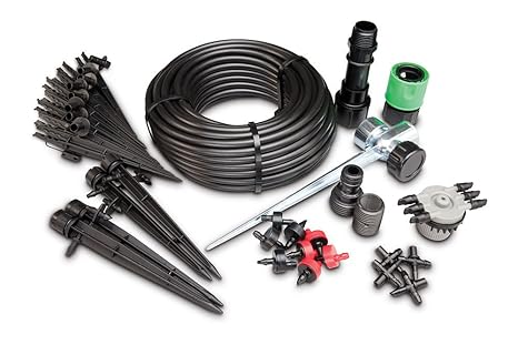 Convenient kit provides everything you need to drip irrigate a garden or landscaped area of up to 75 square feet with maximum watering efficiency.