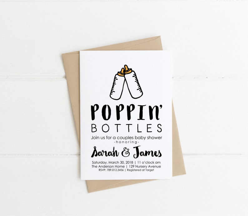 Couples Baby Shower Invitation Poppin Bottles Co Ed Baby Etsy