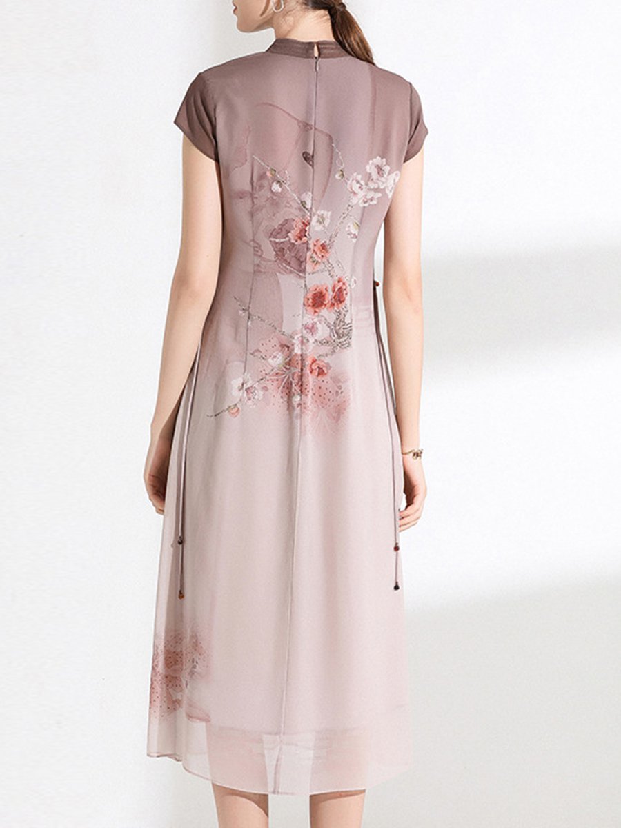 Stylewe Sundress Floral Dresses Casual Swing Stand Collar Printed