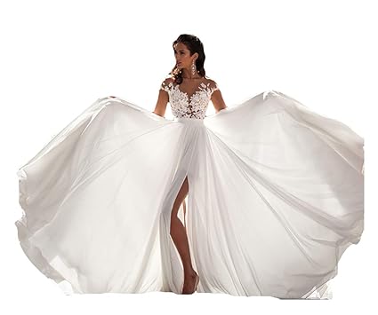 Sexy See Through Beach Wedding Dresses V Neck Bridal Dress With Slit
