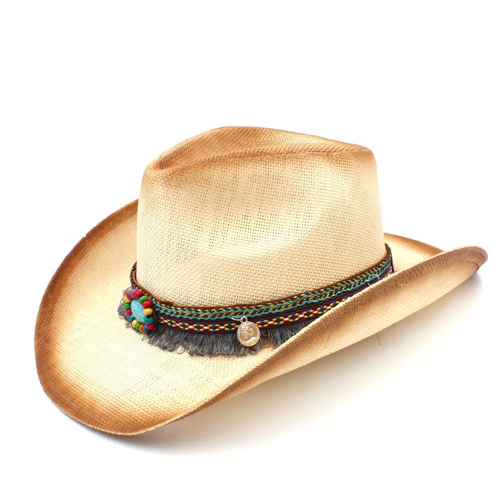 Men Women Straw Cowboy Hats Western Caps Panama Sombrero Wide Brim