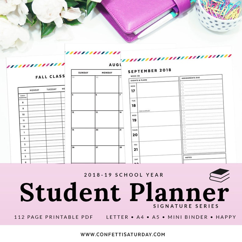 Printable Student Planner 2018 19 Dated Academic Agenda School Etsy