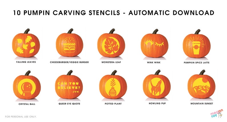 10 Pumpkin Carving Stencils Downloadable Pdf 2018 Pumpkin Etsy
