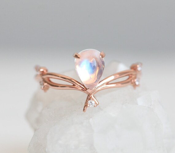 Moonstone Ring Rose Gold Moonstone Engagement Ring For Women Etsy