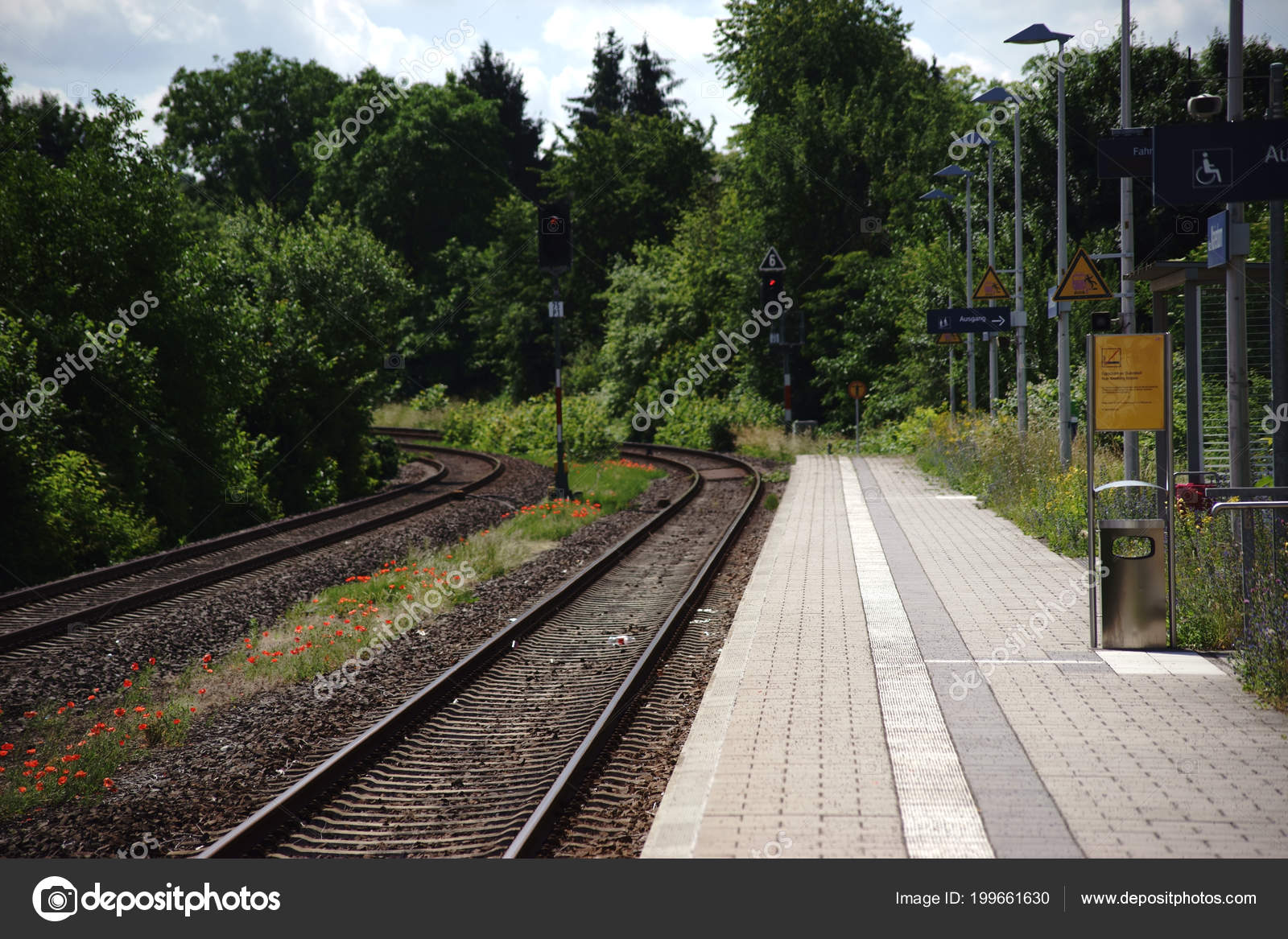 Poppies Railroad Tracks Flower Meadow Poppies Railroad Tracks