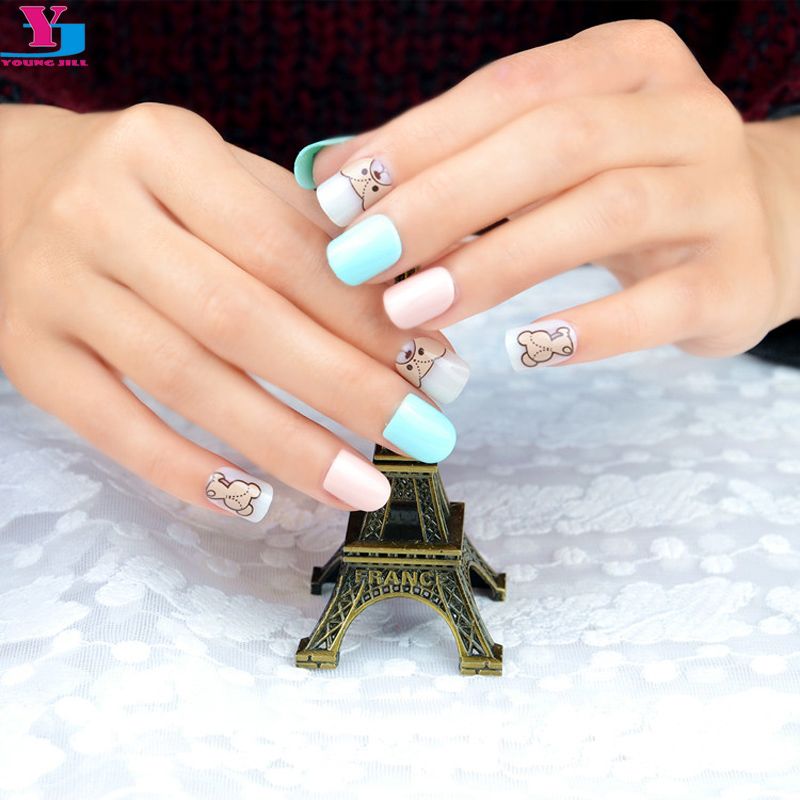 Top Quality Cute Bear False Nails Kids 24 Faux Ongles Manicure