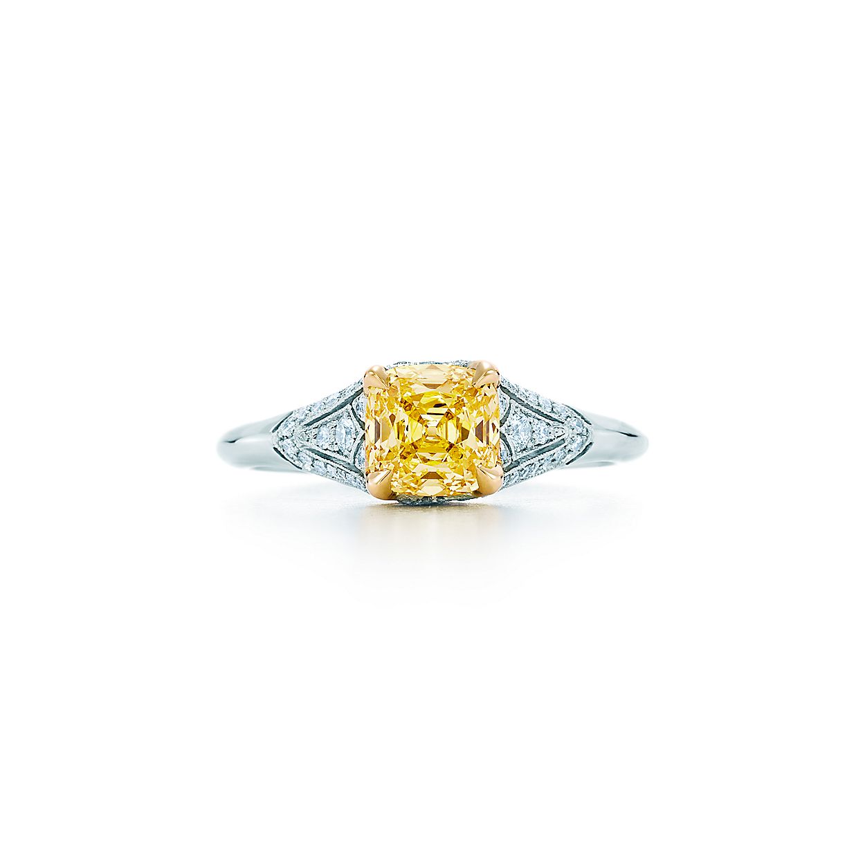 Art Deco Ring In Platinum And 18k Gold With A Tiffany Yellow Diamond