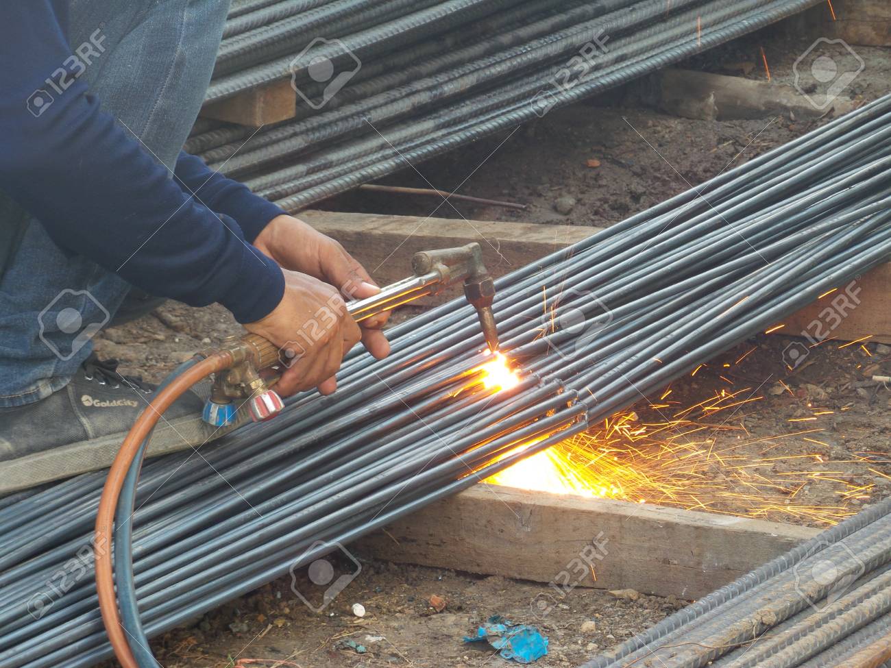 A Cutting Torch To Cut Rebar Stock Photo Picture And Royalty Free