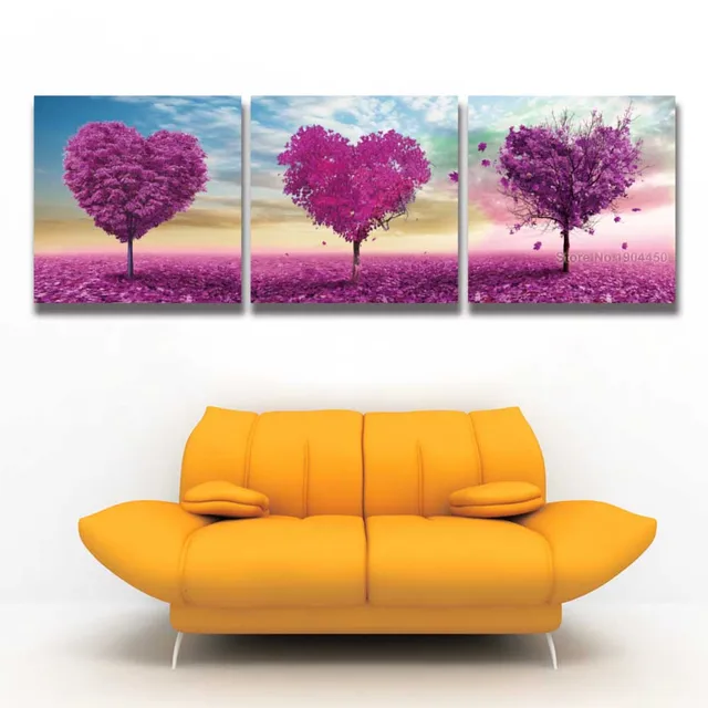 3 Panel Canvas Wall Art Prints Purple Red Love Tree Heart Painting