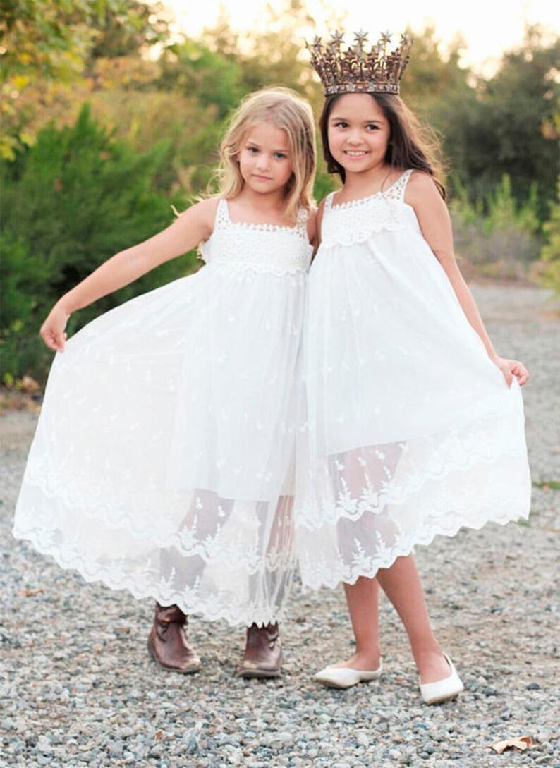 White Flower Girl Dress Girls Lace Dress Rustic Flower Girl Etsy
