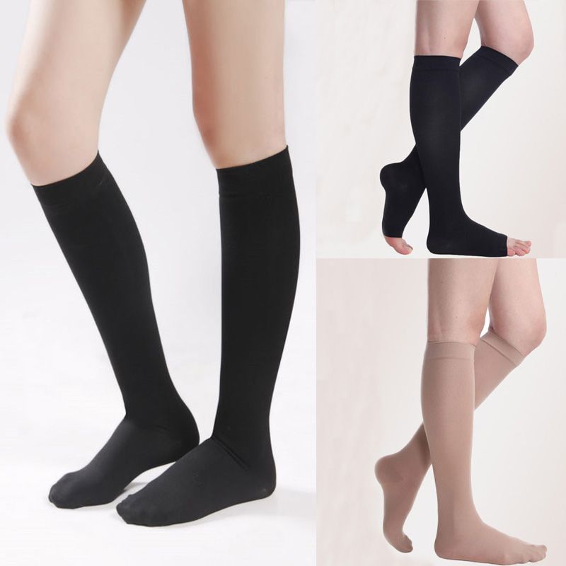 Unisex Opaque Open Toe Firm Compression Knee High Compression Socks