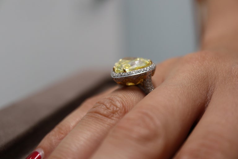 10 Carat Natural Canary Yellow Radiant Cut Diamond Ring For Sale At