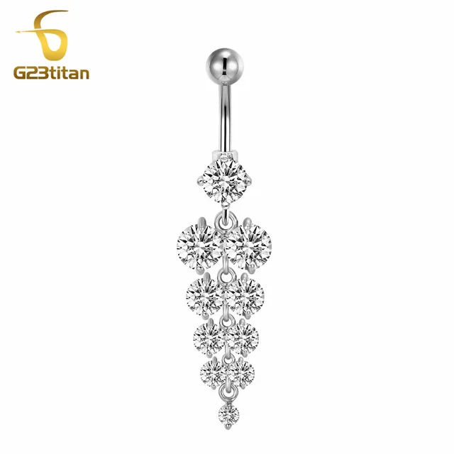 G23titan Charming Rhonestone Grapes Pendant Belly Piercing Ring G23