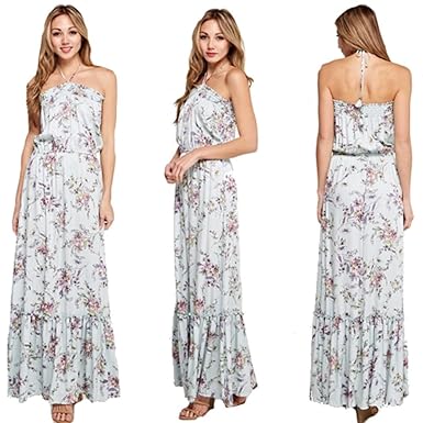 Love Stitch Dusty Blue Floral Halter Maxi Dress Small At Amazon