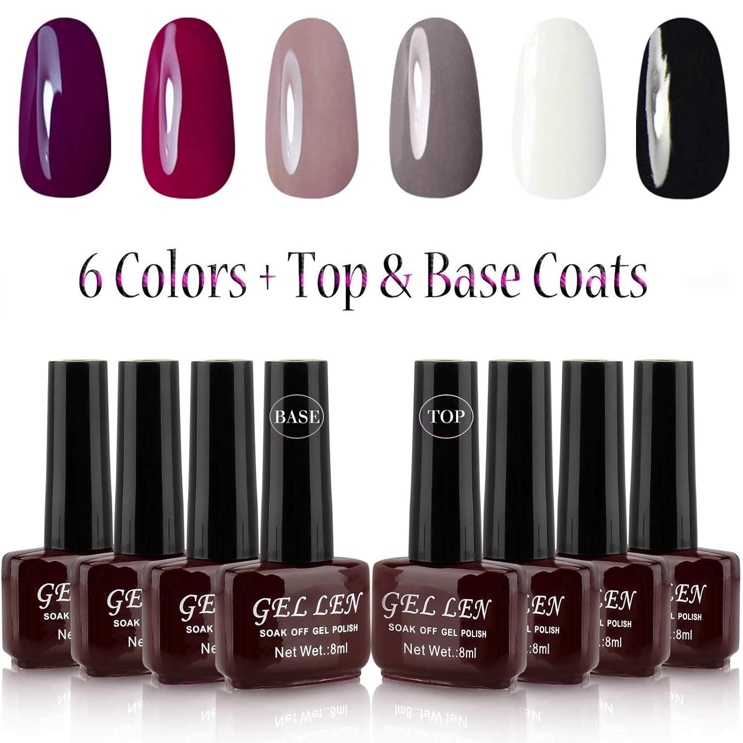 Amazon Com Gellen Classic Gel Nail Polish 6 Colors With Base Coat