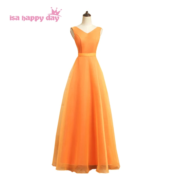 Modest Orange Tulle Ball Gown Long Fluffy V Neck Girls Party Prom