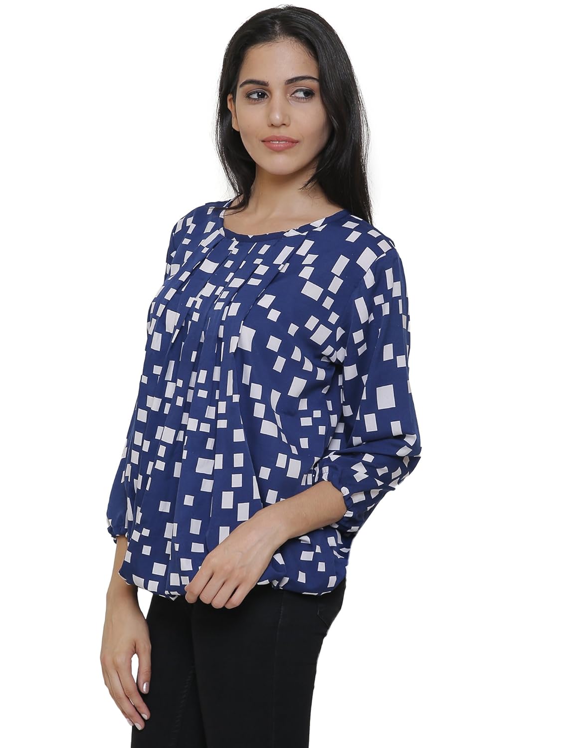Indietoga Women S Blue Poly Crepe Balloon Western Wear Top Plus