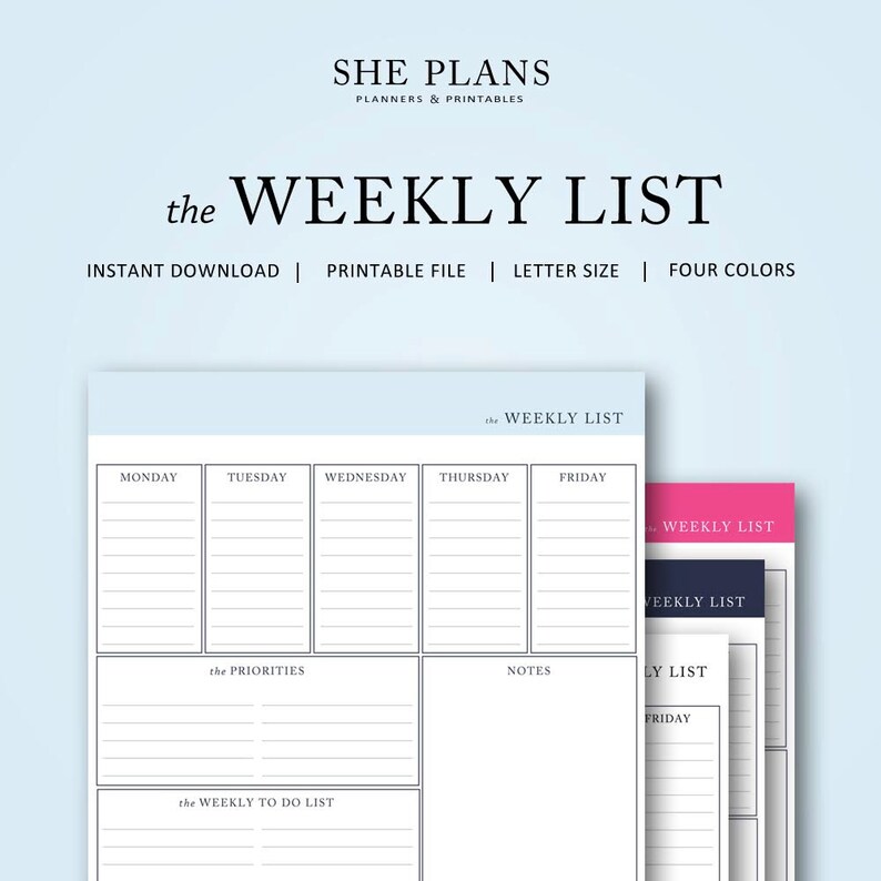 The Weekly To Do List Instant Download Etsy
