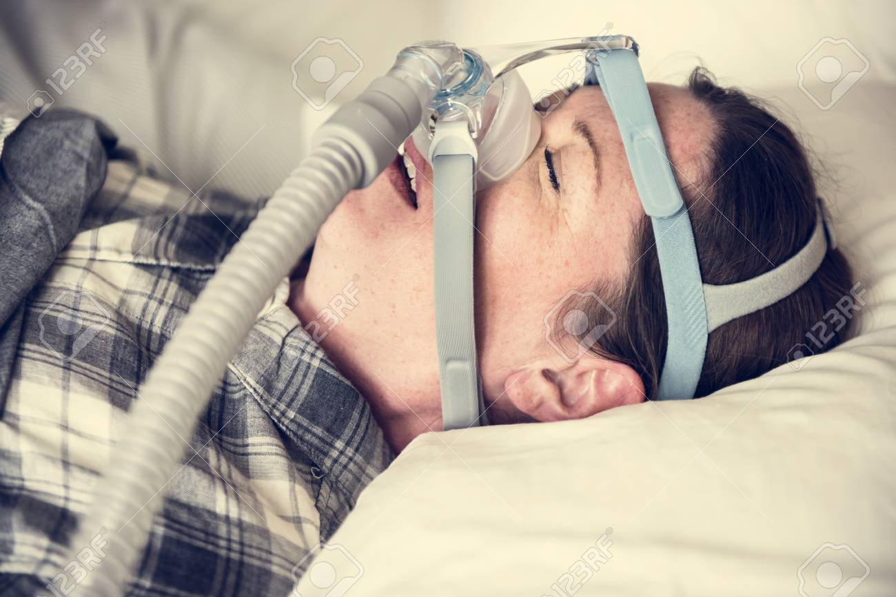 A Woman Sleeping With Anti Snoring Chin Strap Stock Photo Picture