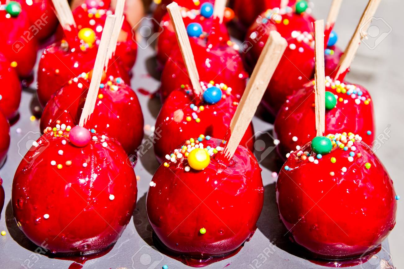 Colorful Candy Apples For Sale At A Market Stock Photo Picture And