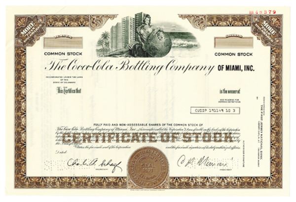 Coca Cola Bottling Co 1976 Specimen Stock Certificate