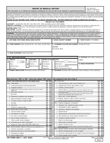Dd Form 2807 2 Medical Prescreen Of Medical History Report