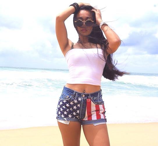 Amazon Com High Waisted American Flag Shorts Levis Roll Up Cuffed