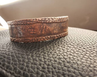 Let the copper soak in a mixture of white vinegar and salt or bury it in sawdust or even crushed potato chips then soak the mixture with vinegar.