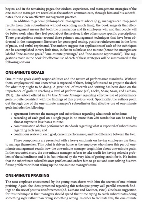 Solved Reading The One Minute Manager Kenneth Blanchard A