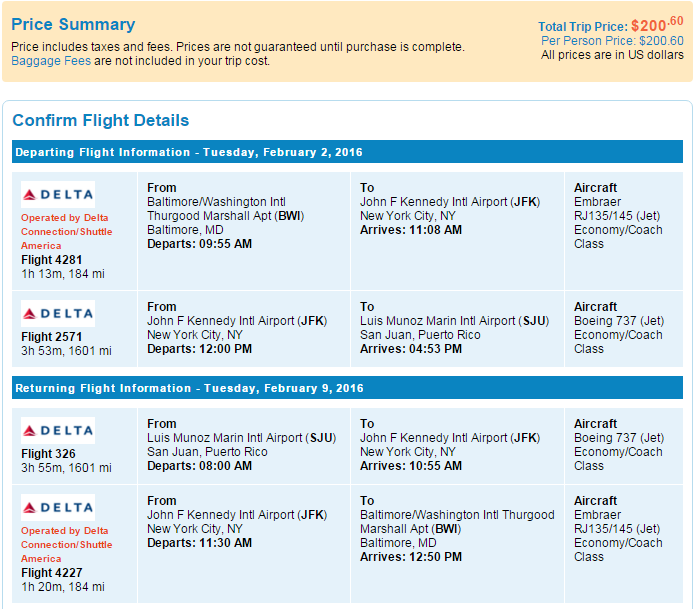 Expired Baltimore To Puerto Rico For Only 200 Return