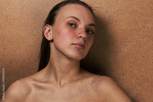 Closeup Girl Portrait With A Scar On A Clavicle After Operation