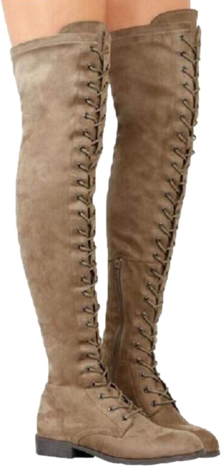 Women Boots Stretch Faux Suede Leather Thigh High Shoes Fashion Over