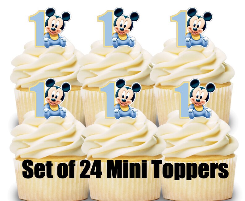 24 Mini Cupcake Toppers Baby Mickey Mouse Birthday Party Etsy