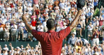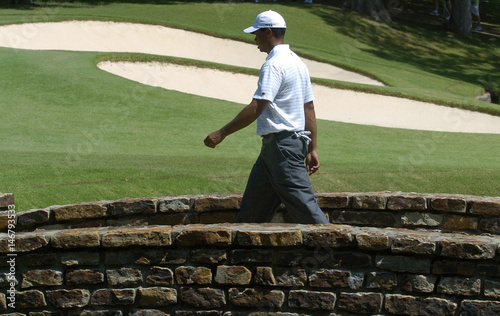 Woods Of The U S Walks Across A Bridge On The Second Hole During