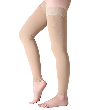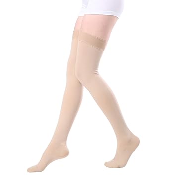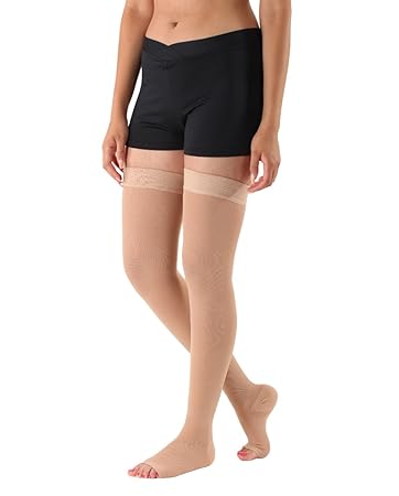 Amazons choice for thigh high compression socks jobst relief thigh high 15 20 mmhg compression stockings open toe with silicone dot band medium beige 41 out of 5 stars 417. Thigh high compression stockings open toe firm support 20 30 mmhg gradient compression socks with silicone band opaque best for treatment swelling varicose veins edema pregnancy beige m 37 out of 5 stars 91. 99 5 coupon applied.