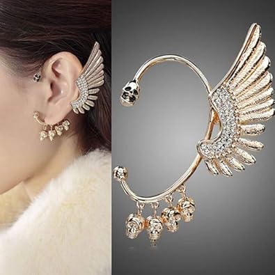 Amazon Com Women Punk Gothic Rhinestone Wing Skulls Ear Cuff Clip