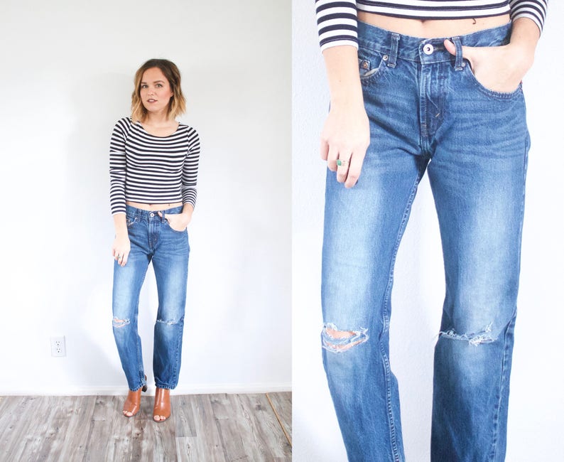Levi Boyfriend Jeans Ripped Mom Jeans Vintage High Etsy