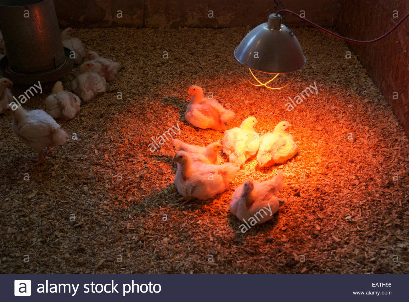 Baby Chickens Under Heat Lamp Norfolk Uk May Stock Photo 12322730